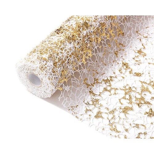 金ラメ、銀ラメで装飾されたメッシュ素材の生地。きらびやかで高級感のあるラッピングにピッタリに商品。
