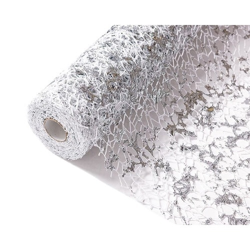 金ラメ、銀ラメで装飾されたメッシュ素材の生地。きらびやかで高級感のあるラッピングにピッタリに商品。
