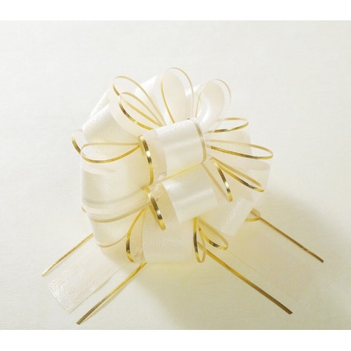 ひもを引っ張るだけで簡単にボウがつくれる便利商品。出来上がりサイズ:約15cm×18cm