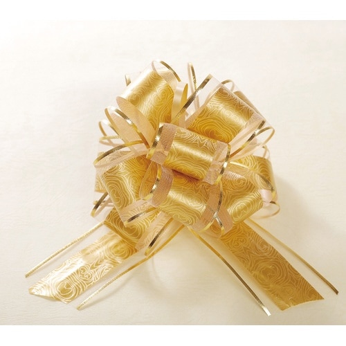 ひもを引っ張るだけで簡単にボウがつくれる便利商品。出来上がりサイズ:約15cm×18cm