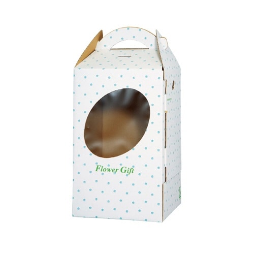 手提げ、箱型、どちらのタイプにも変更可能。商品が入れやすいサイドオープン型で、お花を傷つけません。3辺合計90cm、サイドオープン型小型アレンジメント・4から5寸鉢物用。ボックスタイプのパッド付 |