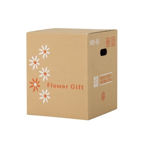キュートな花模様のギフトボックス。高さを380mmにした場合、蓋部分は完全に閉まりません。小型アレンジメント・4から5寸鉢物用天面には伝票貼付けガイドがありパッドの高さは2段階に調節可能。 |