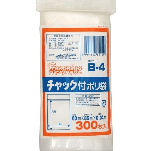 ニッコー ポリ袋 チャック付きポリ袋B 1ケース(300枚/袋×40袋) 9381-8186