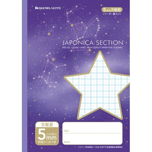 スタンダードな「ジャポニカセクション」よりも少し大人っぽいカラーリングとデザインで、夜空に輝く星をイメージした表紙。本文は科学データにもとづく書きやすい罫色。 |