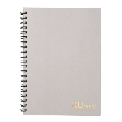 開閉に支障がない限界までリングを小さくしたダブルリングの方眼罫ノート。表紙の金箔押しがワンポイントでおしゃれな印象。本文は裏透けにくく目に優しいクリーム上質紙。