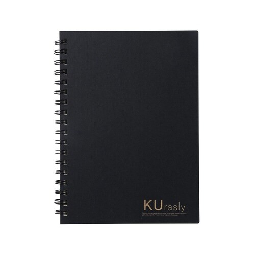 開閉に支障がない限界までリングを小さくしたダブルリングの方眼罫ノート。表紙の金箔押しがワンポイントでおしゃれな印象。本文は裏透けにくく目に優しいクリーム上質紙。 |