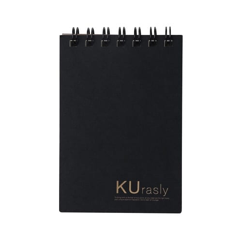 開閉に支障がない限界までリングを小さくしたダブルリングの方眼罫メモ帳。表紙の金箔押しがワンポイントでおしゃれな印象。本文は裏透けにくく目に優しいクリーム上質紙。