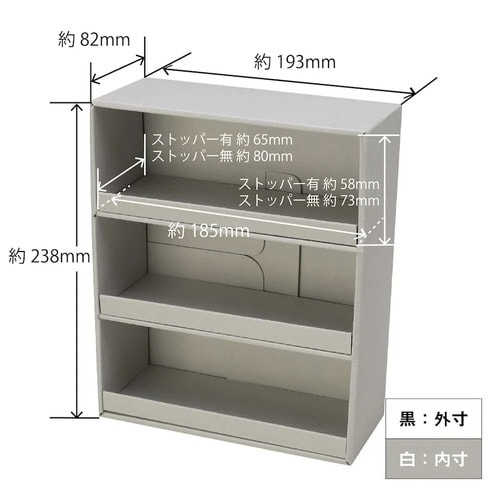 内容:4パーツ、組み立て説明付 | 素材:紙 | 仕様:3段、ストッパー付き | 単位:1セット(5個入)