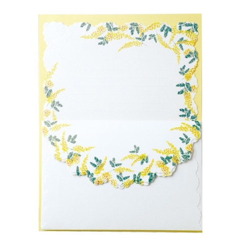 人気のミモザをモチーフにした上品な色合いのレターセット |