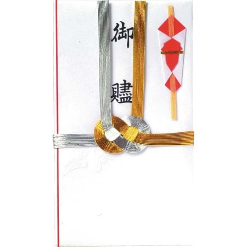 東京折(多当折)で金銀10本水引、御贐の文字入り。中包み付。主に東北地方で使われます。 |