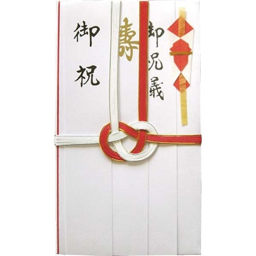 お祝全般用。短冊4枚入(御祝・寿・御祝儀・御餞別)。中包付。水引を外さずに中包(お金)が出し入れできる便利な機能付。 |