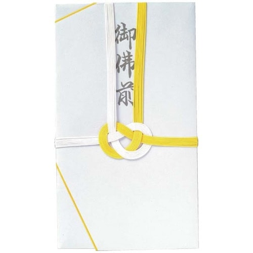 大阪折(斜折り)で黄白7本水引、御佛前の文字入り。10枚入 |