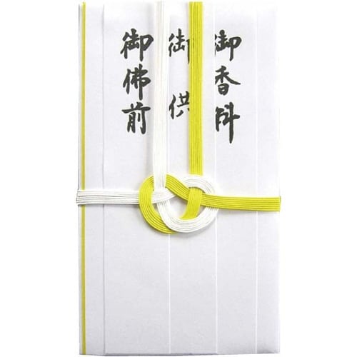 弔事用。短冊4枚入(御佛前・御供・御香料・御布施)。中包付。水引を外さずに中袋(お金)が出し入れできる便利な機能付。 |