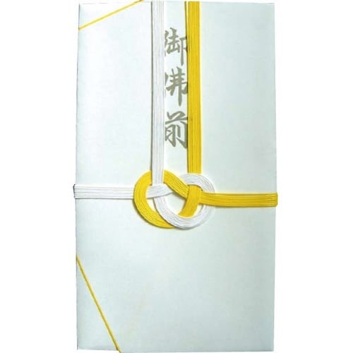 環境に優しい蛍光染料未使用の自然色金封。法要・法事用。大阪折(斜折り)で中包み付。薄墨で御佛前の文字入り。 |