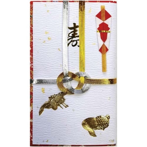 本体1個、寿の文字入り、中包1枚、赤白水引金封3枚