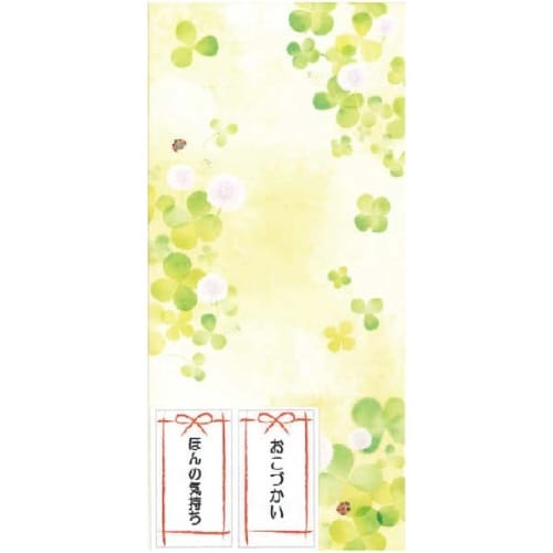 柄:クローバー柄 | 内容:3枚入、表書きシール4枚付き(ほんの気持ち・おこづかい・ありがとう・お年玉) | 用途:ぽち袋、お祝い、お礼、おこづかいな…