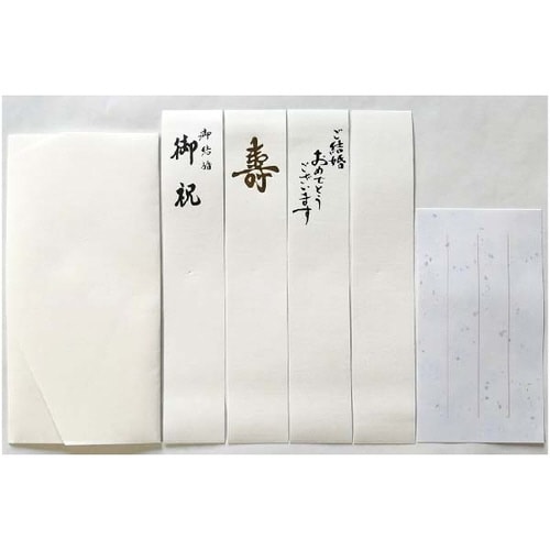 ご結婚お祝用。短冊4枚入(ご結婚おめでとうございます・御結婚御祝・寿・白無地)。中包・メッセージカード付き。 |
