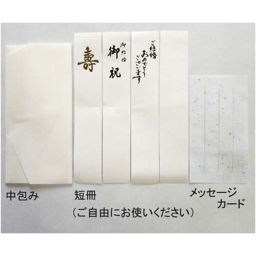 主に新郎向けの結婚祝い。短冊4枚入(寿・御結婚御祝・ご結婚おめでとうございます・白無地)。中包み付。 |