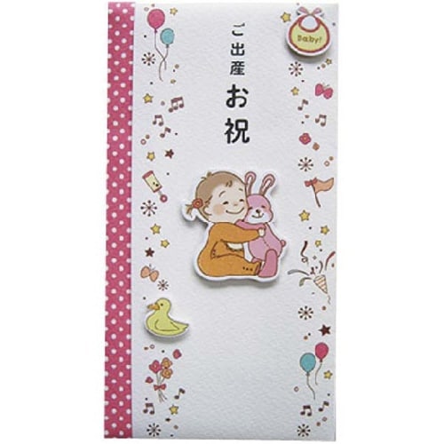 ご出産御祝用。中袋付き。赤ちゃんとウサギなどの柄入りで立体的に見える仕様。裏面に絵柄が入った差し込み口付き。 |