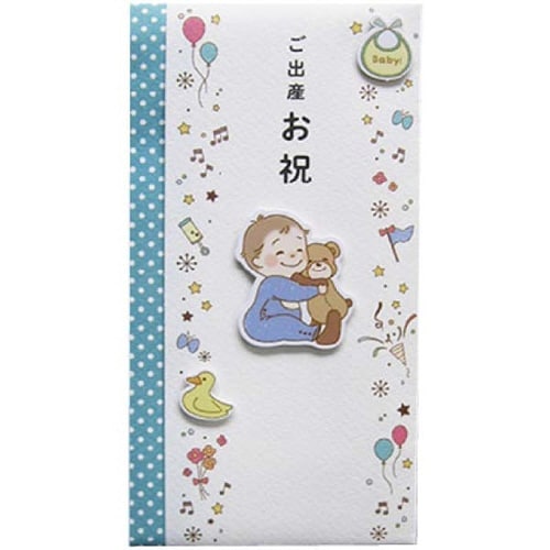 ご出産御祝用。中袋付き。赤ちゃんとくまなどの柄入りで立体的に見える仕様。裏面に絵柄が入った差し込み口付き。 |