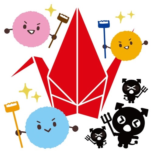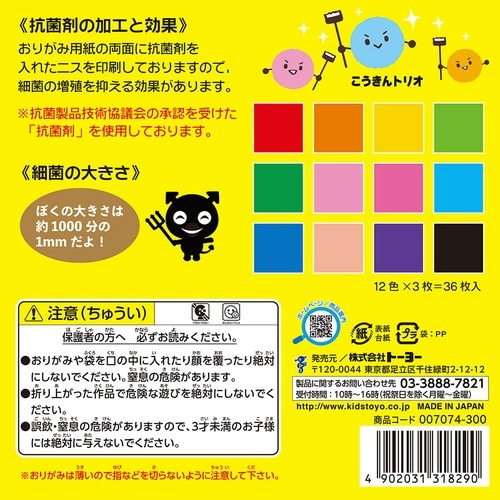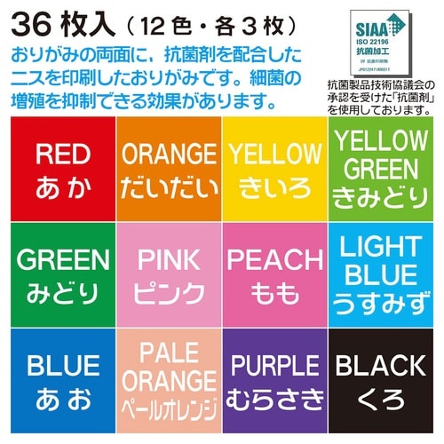 おりがみの両面に抗菌剤入りのニスを印刷。抗菌剤には、安全性の高い銀系無機抗菌剤を使用しておりますので製品の表面上における細菌の増殖を抑制し消臭効果も発揮します。 |