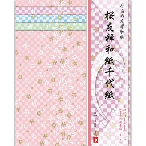 片面のみ手染めしてある桜を散りばめた和紙千代紙です。 |