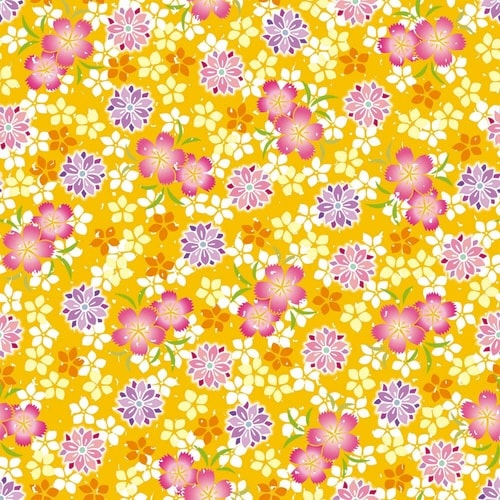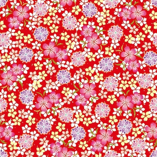 上質紙に花を散りばめた和柄の千代紙です。リングかざりの折り方付き。 |