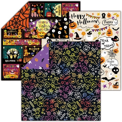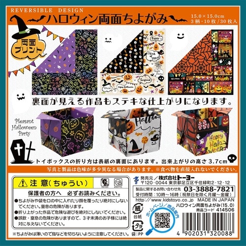 ハロウィン柄の両面プリントちよがみです。3柄各10枚の30枚入。トイボックスの折り方付き。 |