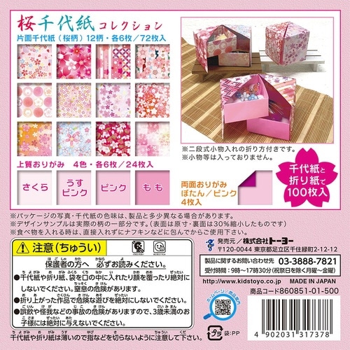 桜柄の千代紙と桜色のおりがみの計100枚入り千代紙。 |
