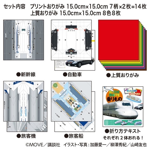 動く図鑑「MOVE」とのコラボ商品です。4種類の超リアルなおりがみが折れます。乗りものデータと折り方を解説したカラー冊子入り。 |