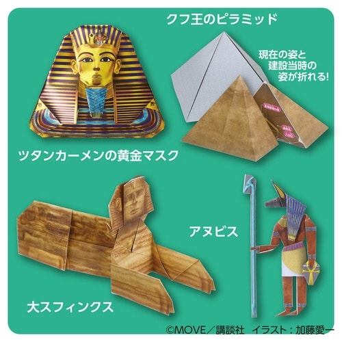 動く図鑑「MOVE」とのコラボ商品です。4種類の超リアルなおりがみが折れます。古代文明のふしぎと折り方を解説したカラー冊子入り。 |