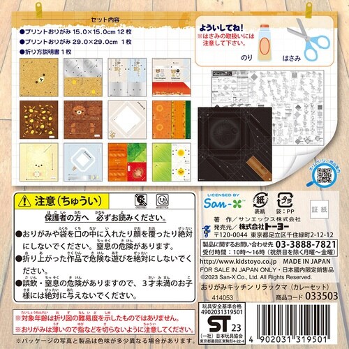 リラックマをモチーフにした、おりがみキットです。やさいたっぷりのカレーセットが作れるます。 |