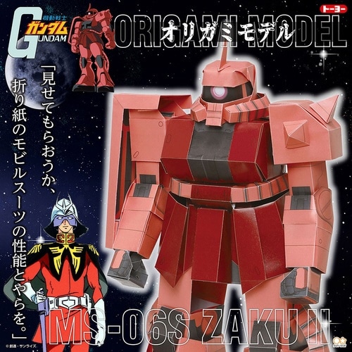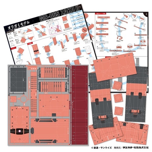 「機動戦士ガンダム」のモビルスーツがおりがみで折れる!パーツを折って組み立てることで完成する作品は、しっかり自立するので、作った後に飾ることも可能です。 |
