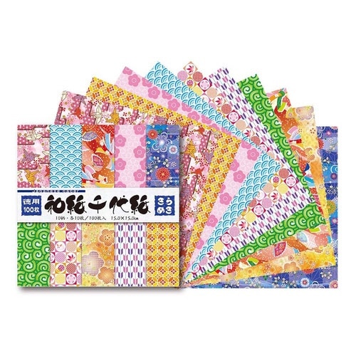 和紙で作ったお得な千代紙です。大満足のボリュームですので、枚数を気にせず使えます。奉書紙を使用しています。 |