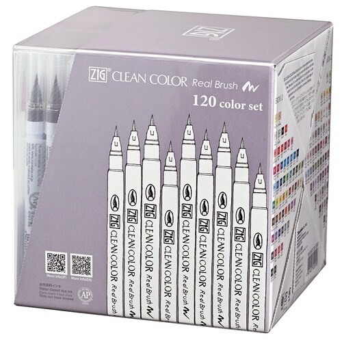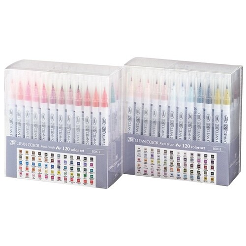 毛筆タイプのカラー筆ぺん。鮮やかな色合いで水彩アートやレタリングが手軽楽しめるカラーブラッシュペンです。全120色がセットになりました。 |