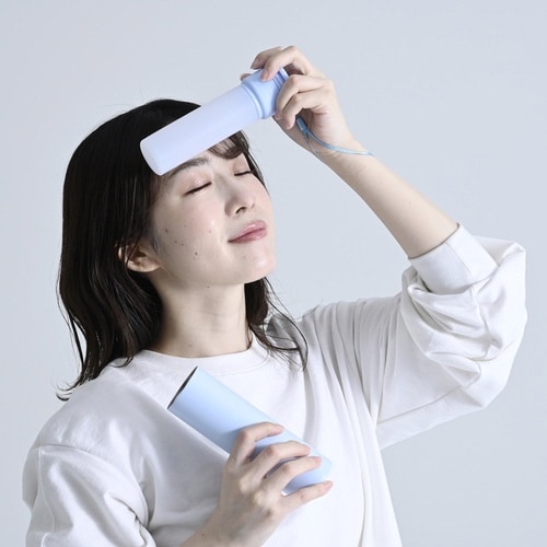 手軽に持ち運べ、魔法瓶のような真空二重構造で冷たさをキープ。40℃環境下で3℃以下を15時間以上保つ。首元や脇下・手首などをダイレクトに冷却して効率良く体温を下げる |