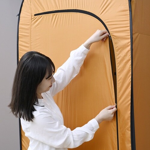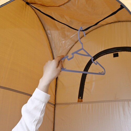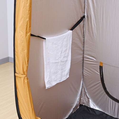 タテなら簡易トイレの設置・着替え用に、ヨコなら避難所での寝床・休憩・荷物置き用に。パッと広がり簡単設置。屋内外でのプライバシーを確保。換気ができる小窓2ヶ所、小物をかけられるベルト2ヶ所付き。 |
