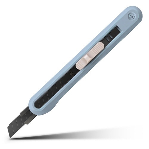 ニュアンスカラーのスリムなカッター。スタイリッシュなデザインに、SK5合金刃のシャープな切れ味をプラス。片手でスライドするだけの簡単操作。離すと自動ロックされるので、刃の長さ調整も容易です |