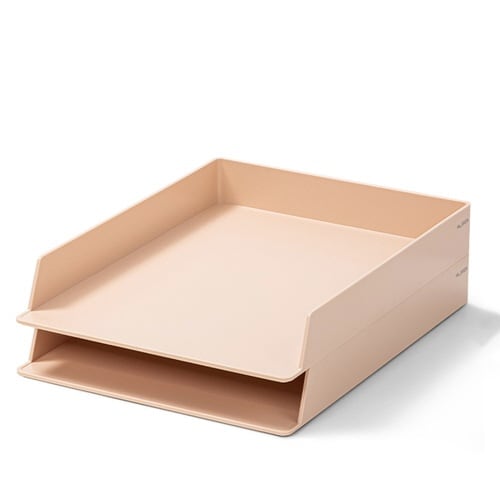 デスクにそっと馴染むニュアンスカラーのレタートレイ。二段で整理が快適に、また口が広く重ねても使いやすくストレスフリー。丸角でやさしいフォルムの安心設計 |