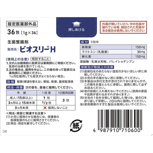 日ごろの便通を整える ビオスリーH 36包 整腸薬