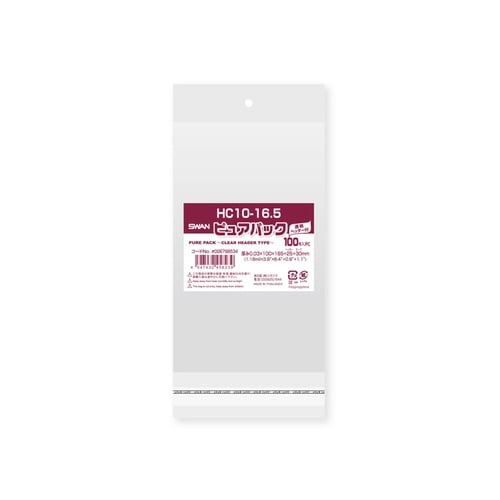「ピュアパック」は海外製フィルムを使用したエコノミータイプのOPP袋です。商品をフックに吊り下げて陳列する際に便利な穴の開いたヘッダー付きです。ヘッダーが透明のタイプです。 |