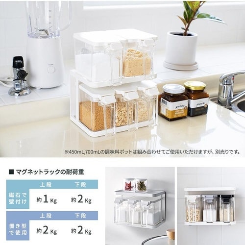 背面に強力マグネット付きのラックで浮かせる収納・置き型両方に対応しています。滑り止めもついて位置がずれにくい。 |