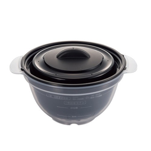 吹きこぼれにくい構造で、容器内を熱が対流するのでうまみが逃げず、ふっくらおいしくごはんを炊き上げます。1/2合(約1膳分)、1合炊き用の計量目盛り付き。 |