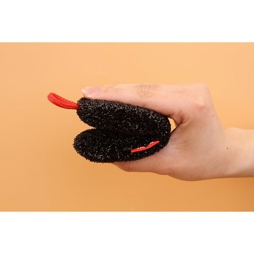 ループ状のフィルム糸が汚れをしっかり落とす。くびれがあるから折り曲げやすいデザイン。収納に便利なつり紐付き。 |