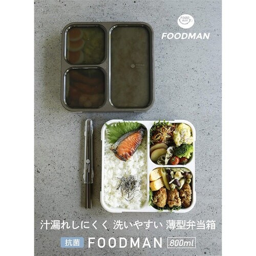 A4サイズで厚みはわずか3.5cmなのでカバンの中で立てて運べます。内側をパッキンで塞ぐので汁漏れしにくい仕様になっています。蓋の内側の仕切りに固定されているパッキンが汁漏れを防ぎます。 |