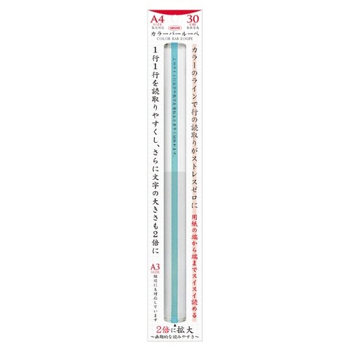 カラーのラインで細かな行の読みとりが簡単にできるルーペ |