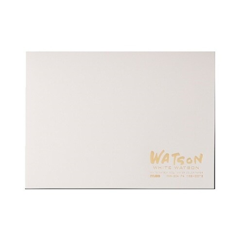 ホワイトワトソン紙を四辺全て糊で固めた製本のスケッチブックです。ブロックタイプと呼ぶこともあります。水を多く含んで着彩してもある程度平らな状態に落ち着くので、乾いたあとに残る波打ちを抑えられます。