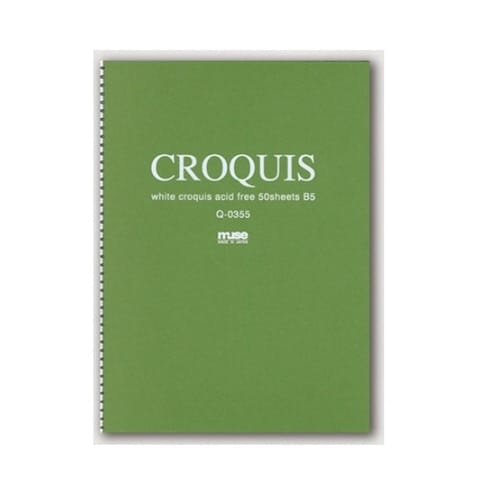 簀の目の入ったクロッキー用紙を本型の背付きスパイラル綴じにしたスケッチブック。鉛筆、コンテ、パステルがよくのり、発色も良く丈夫です。スケッチやレイアウト、プランニングなどのラフ用途に最適です。