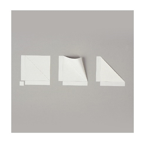 額装用マット紙に作品を固定させて支える、三角状の紙製コーナー