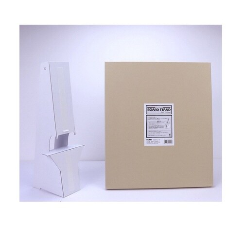 ボード作品や、スチロールパネルなどに貼合した作品・POPなどを机やショーケースに飾るための紙製折立式ディスプレイスタンド。店舗、オフィス、公共施設など広範囲な場所で展示資材として利用されています。 |